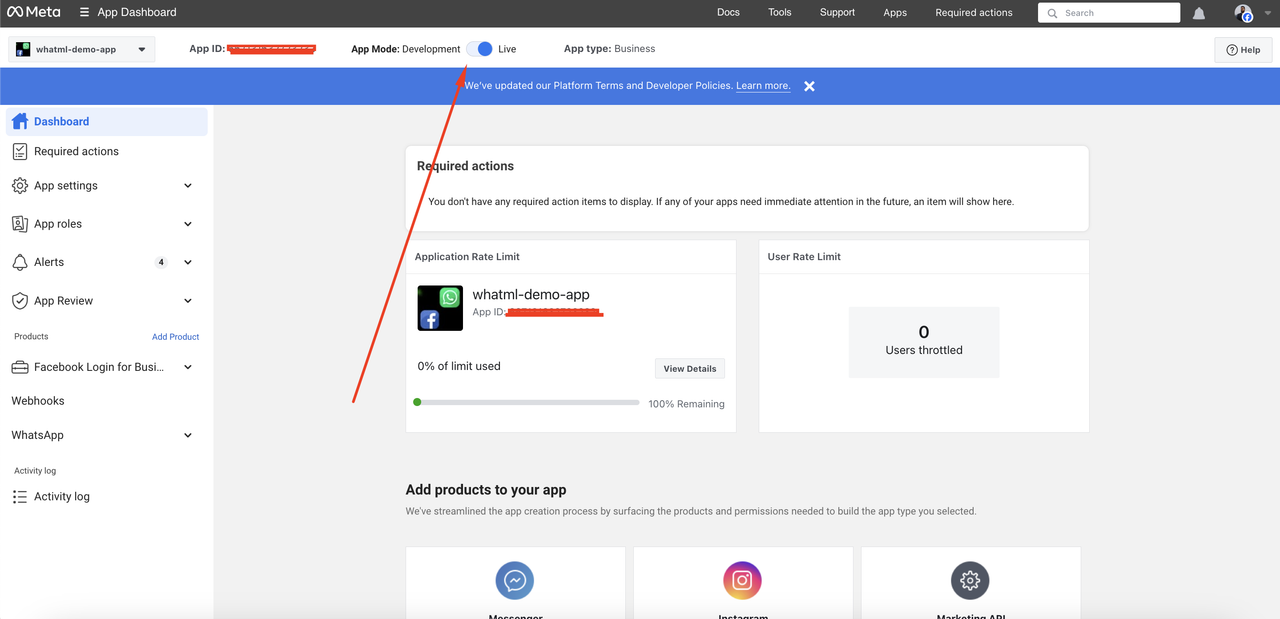 How to install WhatsappESHow to setup APIHow to Set Up The APIFollow this video guideAfter approving the request of the public_profile request make it liveRemember: for clients purpose, use this system you need to submit the app for approval to MetaInstall WhatsappES at WhatsMLChanges Log